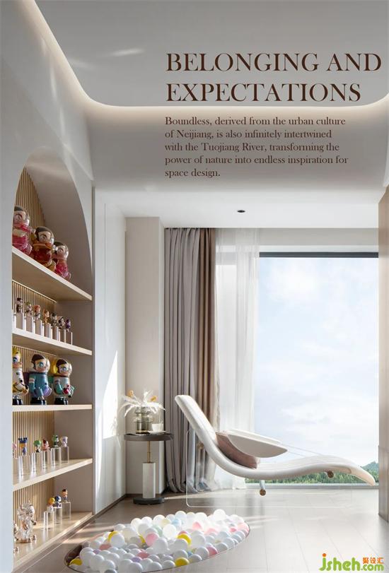 无界,源于内江大千文化的城市文脉,亦在与沱江的阡陌纵横中无限交融,把自然的力量转化为空间设计的无尽灵感。