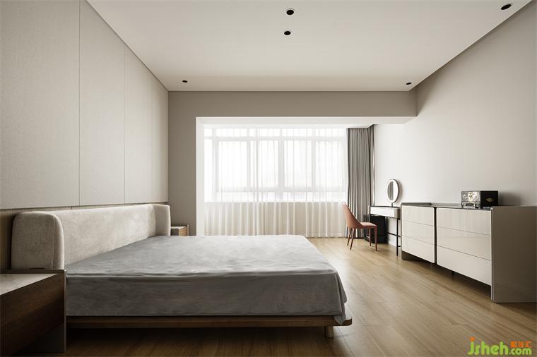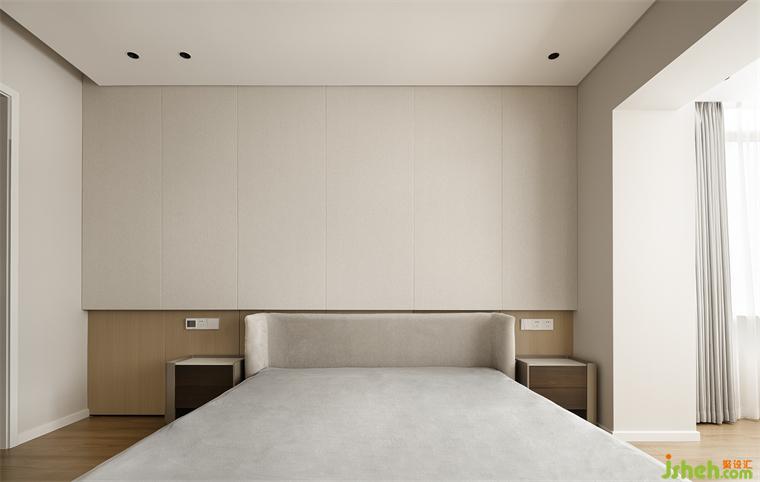 主卧,别墅设计以酒店套间设计手法,素雅天然木调,使得空间更加纯粹和宁静,自然和质朴的味道,身心在此刻得以放松,赤脚踩在温润的地面上,感受家的温度。