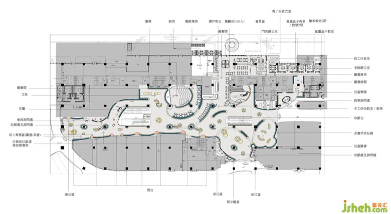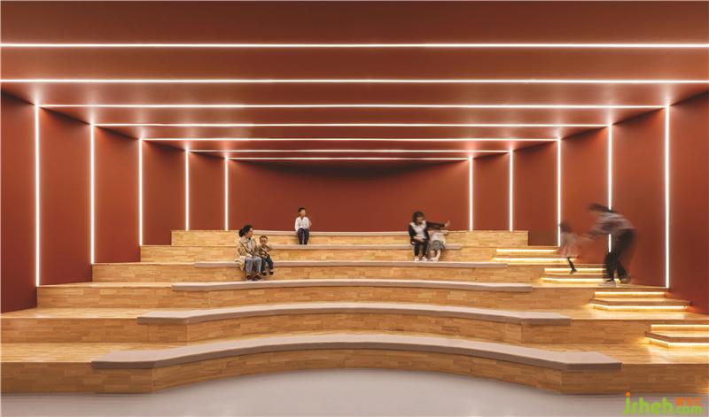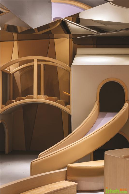 第四个区域是一个棕色的游乐区,孩子们可以在万花筒般的儿童书店设计世界中玩耍及结交新朋友。