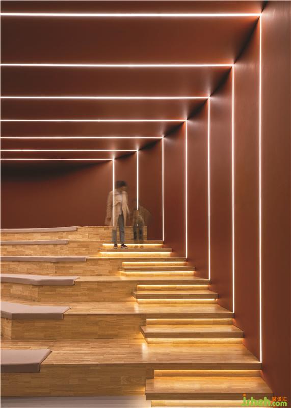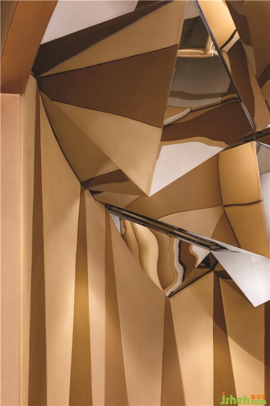 多角度镜面不锈钢天花营造出视觉上的错觉和空间剌激,并描绘了“天空是极限”的信息。