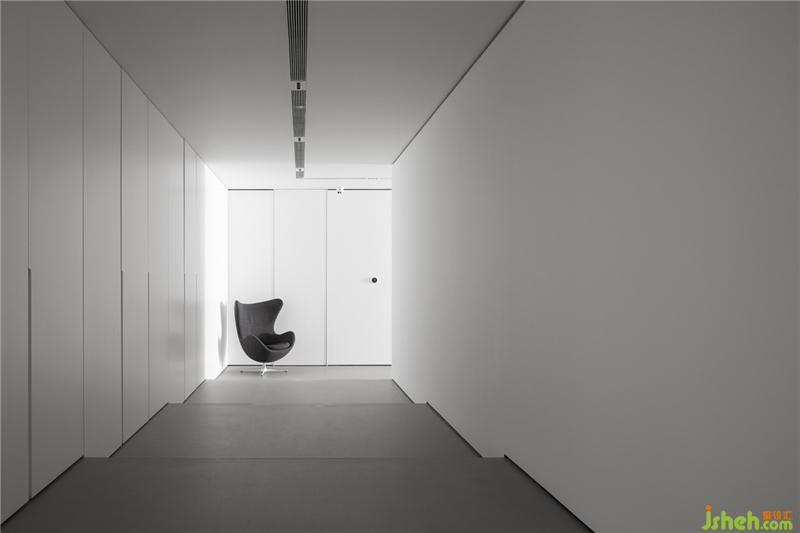 地下一层则主要作为休闲区,以亲友社交与会客为主。作为休闲区,设计师用柜体作为承载,发挥其使用功能;在另一方面,也考虑到空间作用,所以在最大限度上营造了宽敞、明亮的交谈娱乐空间。在设计上,抛却复杂的装饰,用最简洁明了的方式对整个空间进行分割,独立而不孤单,交融且和谐。