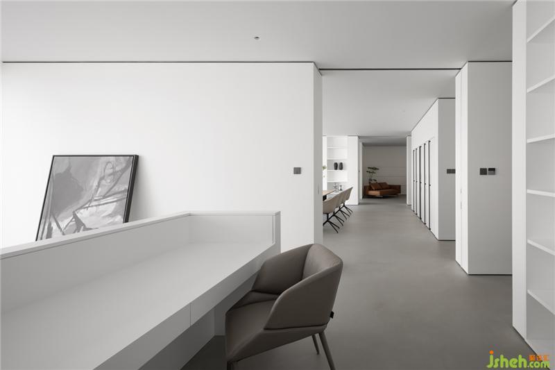 移景入室景中之境一层定位为家庭的起居空间,分为三个区域,不同的空间之间通过设计分割的手法做到融会贯通的效果,把书房、客厅、餐厅进行了分割和融合,无论主人使用任何空间都可以做到独立或者融合,最大可能的让生活在其中的人可以进行互动。