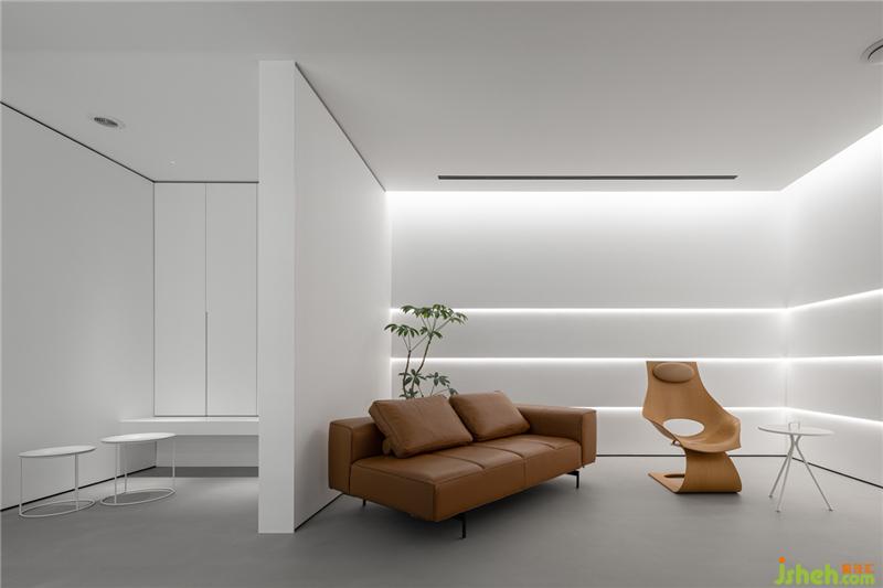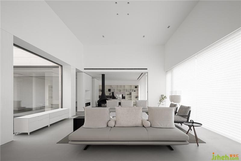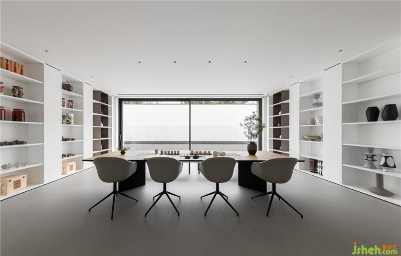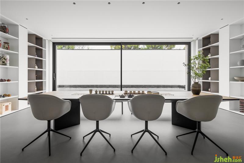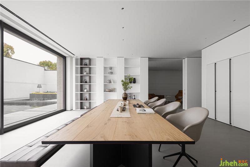 在色彩装饰层面,拒绝花俏,用最简单清新的色彩和造型来装饰空间。茶室与庭院,用玻璃墙分割,不仅延伸了室内空间,还将自然与空间融为一体。