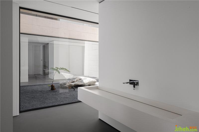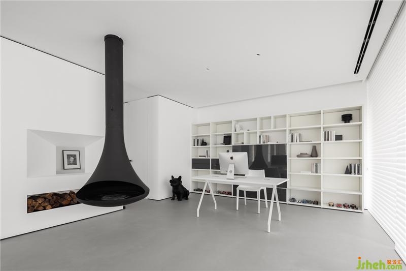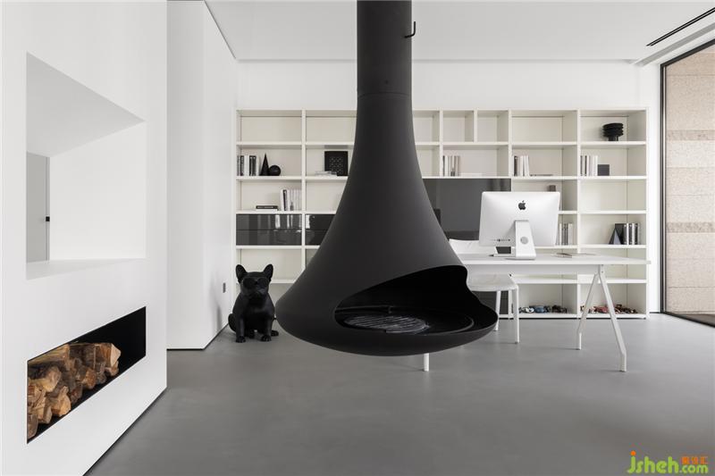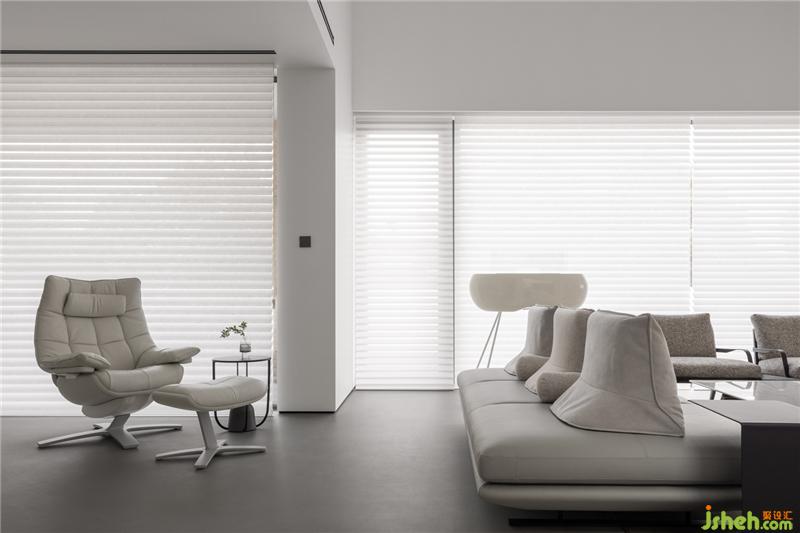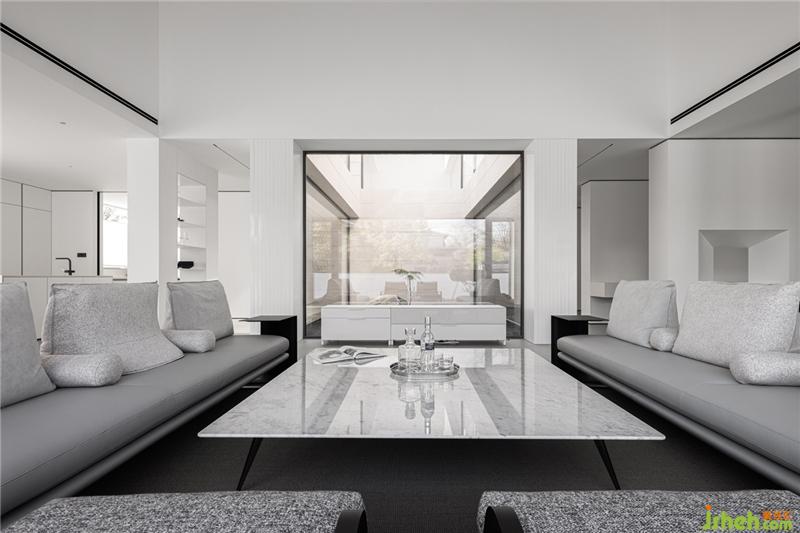 为了贯彻安静纯粹的生活理念,设计师在空间的材质与色彩的选择上采用简单、自然的风格来装饰,如黑白灰三色及大理石的运用;其次,在室内多处地点放置了盆栽绿植,打破了空间的沉闷感。造型方面,用极简线条来构建空间结构,大面积的留白也让空间看起来干净清爽。