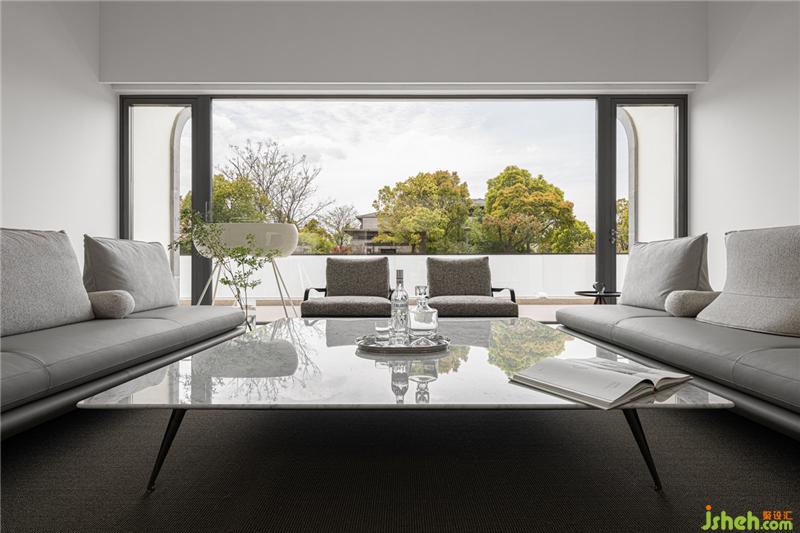 利用玻璃幕墙,将自然风景与室内空间组成一个有机的整体,让自然与空间相得益彰,形成室内的自然景观。抛却生活与工作的烦恼,回归本心,感悟生活、感悟自然。