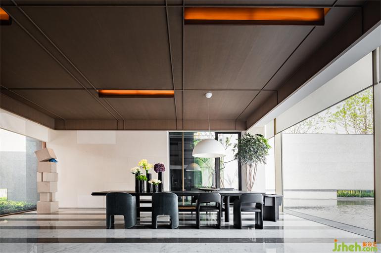 建筑的成立,根本在于空间的意义,而通过形式的操作来实现整体概念的具象化。南京会所设计内部空间与建筑外观站在“空”与 “有”的⻆度于设计初期便展开密切研讨。广泛的通透玻璃面设置将充满艺术氛围的内部世界牵引至表皮,内部空间逻辑强化了建筑表达,外部景观世界欣喜地发现自身得到了呼应,建筑艺术不再局限于空间的围合,动态的观念取代了静态的观念。