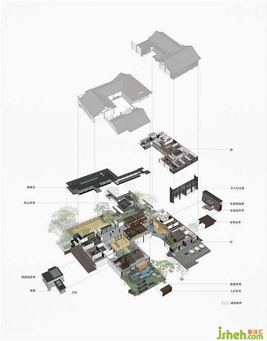 顺势而下,有亭坐落于咖啡区,三面格栅围绕而成,亭者,停也。水吧立于其中,楼中之亭,轻巧、灵活。视线奔腾,向远处流去,重山迭峰,一白色飞瀑如银线飞流,两丈长的【溪山行旅图】于静穆中增添一分动意。天光倾泻,循微光而去,日光里行走,晃神之中瞥见隐隐青山!