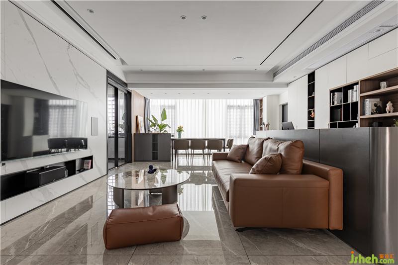 迫不及待和你们分享他们家的大客厅。整个大客厅的面积42.6㎡,所以一入门,即刻就能产生大平层的既视感。