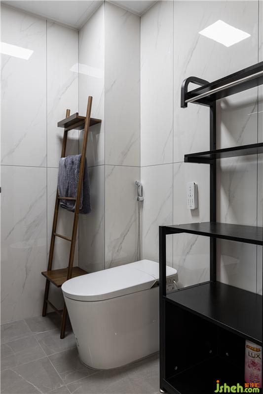 客卫原位于客厅书吧正后方,通过改变动线,不仅形成了干湿分离,还避免了从客厅进入,保证了客厅背景墙的完整性。