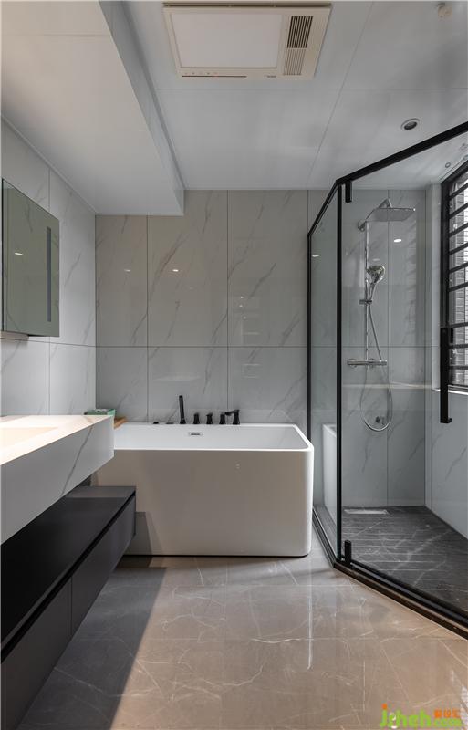 虽然公卫的淋浴房非常大了,但主卫还是配有钻石型的淋浴房,方便两位主人日常使用。吊顶采用大铝板,更显大气整洁。