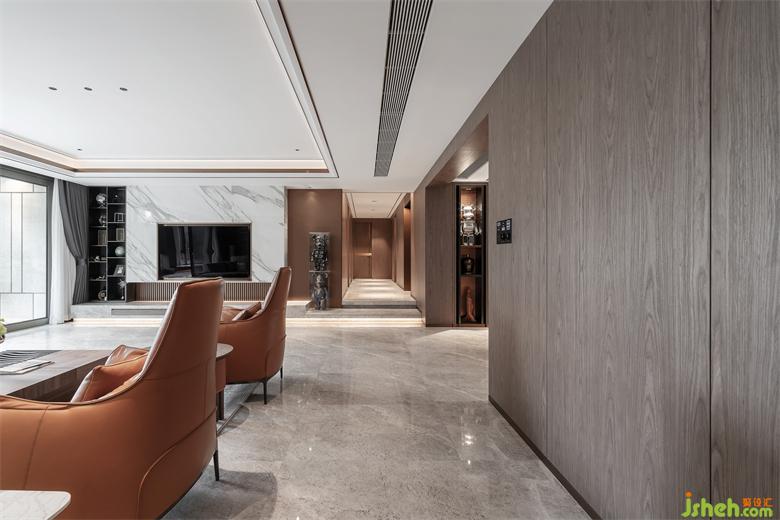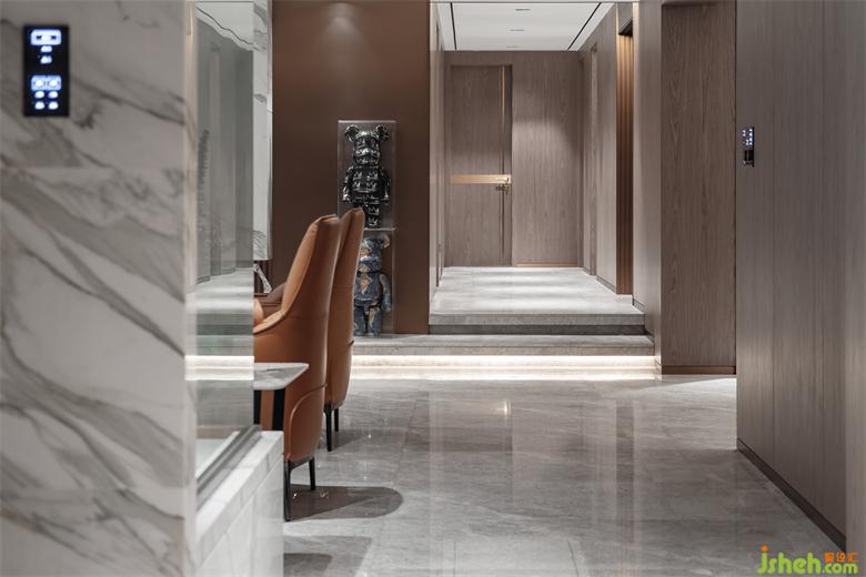 走廊的两旁是卧室、书房及卫生间。家装设计连贯的空间让视野开阔的同时让空间的分化特别规整,让空间得到更深层次的利用,色彩与灯光的搭配,简洁的线条,干净利落,每一个细节把握有度。