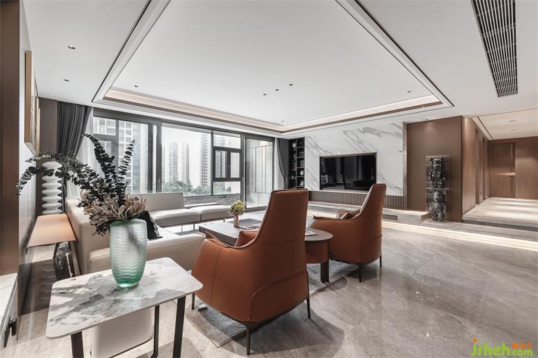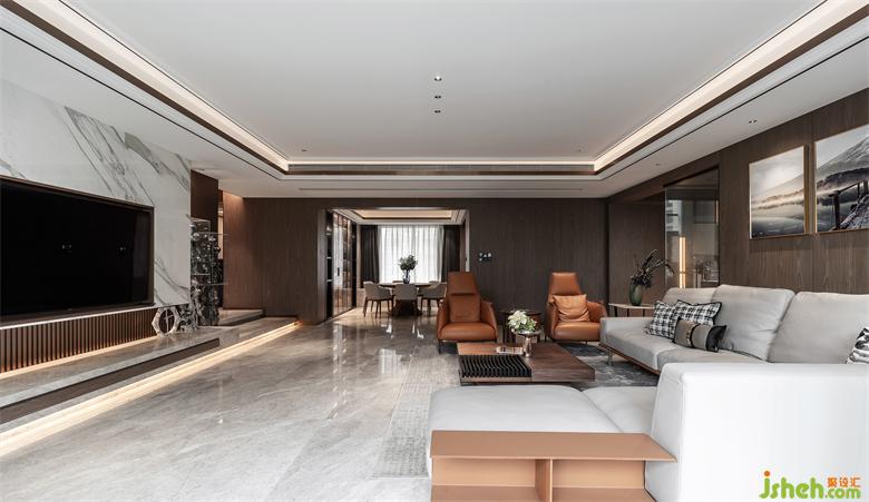 客厅是家的门面,客厅的设计和陈设会在一定程度上反映出主人的审美、性格和素养。家装设计轻奢风的客厅,精致华丽的装饰元素,明亮简洁的空间线条,奢感十足。无主灯设计,低调内敛的搭配,风格统一,质感强烈。开阔的空间视野,极好的采光,造就优雅舒适的空间氛围。