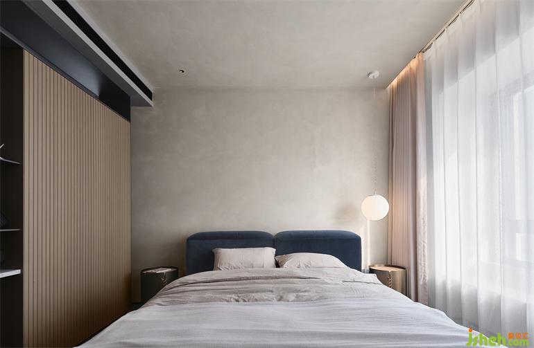 从充满张力的直线条隔断转到睡眠区,粗糙墙面下家具的设计语言更多的是在表达圆润与细腻,柔和的曲线如肌肤,当你需要依靠时以带来最契合的支撑。