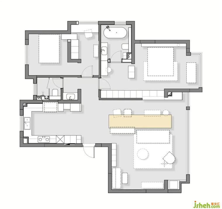取消了淋浴,主卫中加入了浴缸,不是做基本功能配置的重复和套叠,生活品质更进一步的体验才真正具有疗愈力。