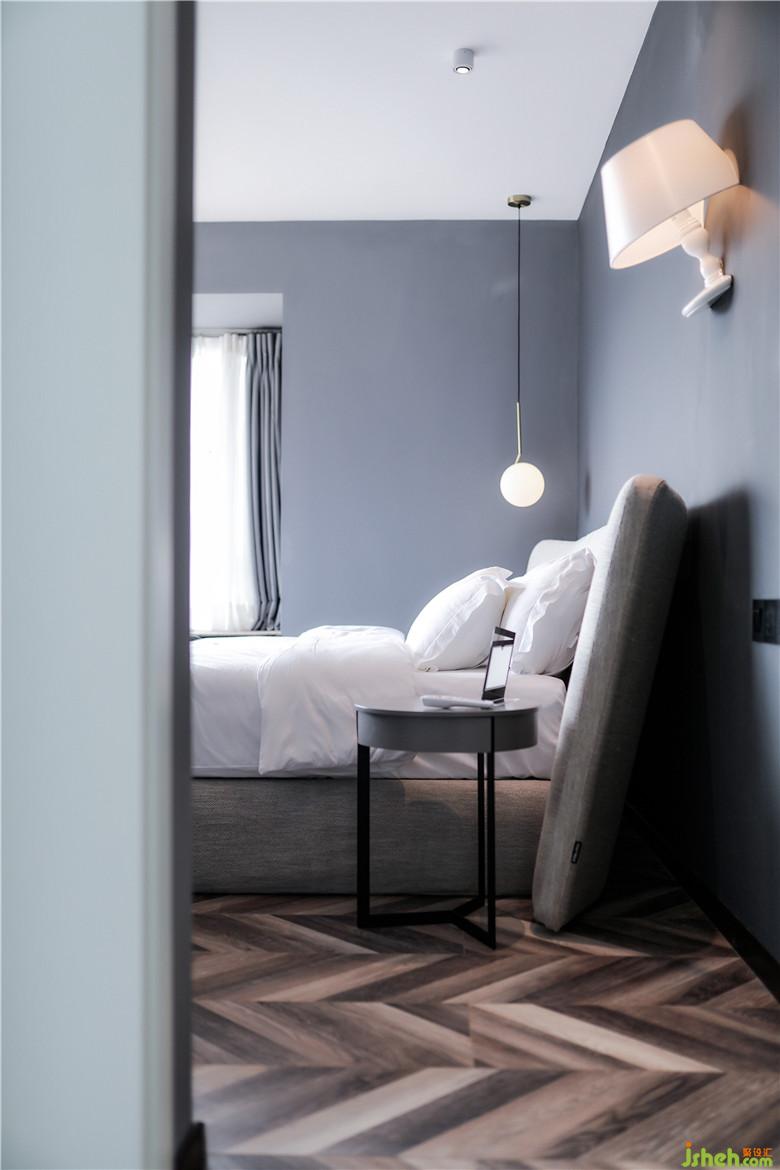 个性化房间,透过明亮的大玻璃窗户,借景入室,与手工打造的床头背景文化墙相互辉映。