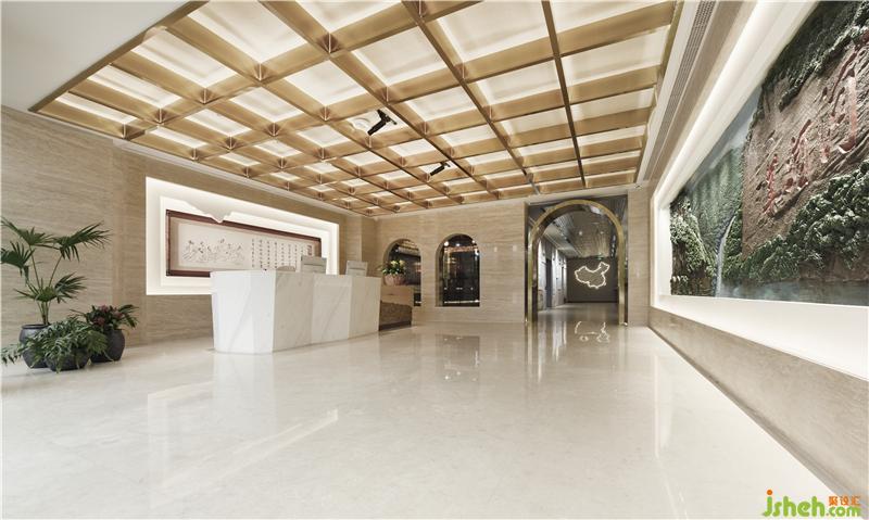 过道入口的金色圆弧 与过道尽头的发光装置遥相呼应