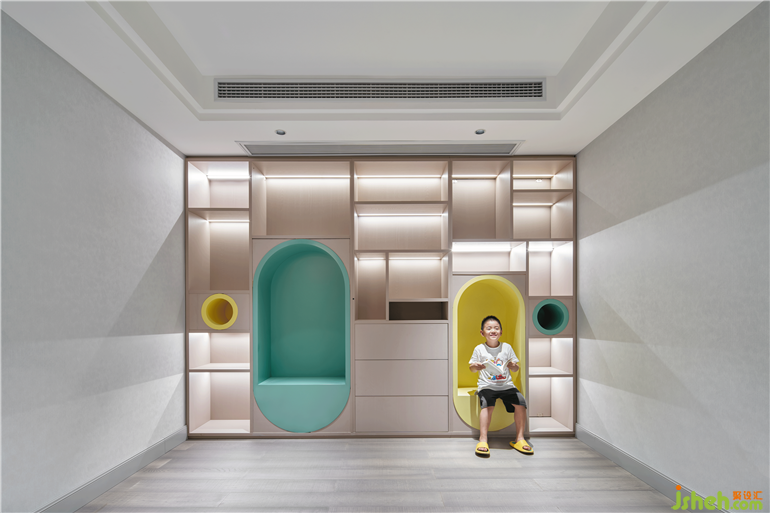 二楼是属于孩子们的娱乐天地,配置完善的私人空间做到了休闲学习两不误。公共空间则是共同的娱乐区,孩子们可以在这个空间中尽情的玩耍,编织自己那天马行空的梦想。