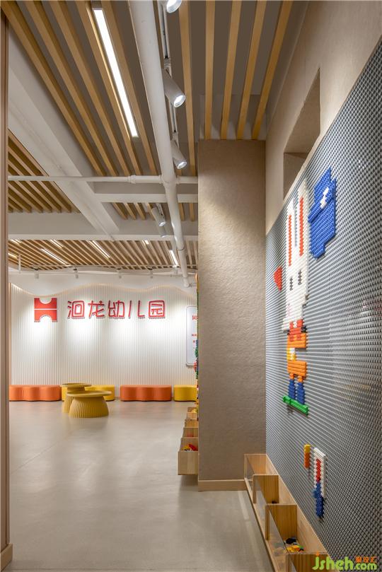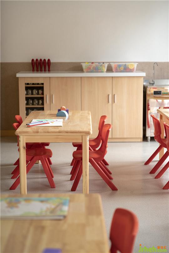 我们大面积的运用了可后期灵活改造的砧板作为墙面装饰,可用于展示孩子们的艺术作品,张贴字画,让孩子们能体会到亲手搭建自己的校园的快乐,增加了他们的参与感与对艺术的敏感度。