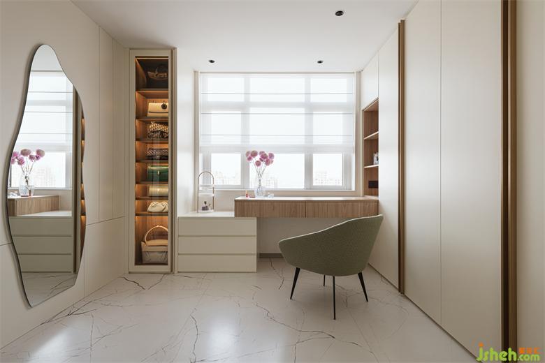 精致的女主人,注重空间时尚潮流氛围的营造,活泼,乐观的生活情趣。色调整体暖白,局部点缀浅绿色,优雅又不失格调。沙发选用L造型,简洁的设计,更好的释放空间,让回家的人在此卸下一身疲惫,投入温馨的家。