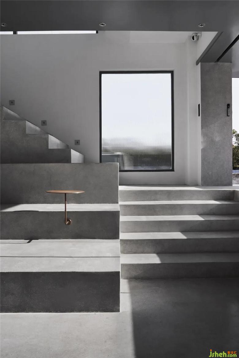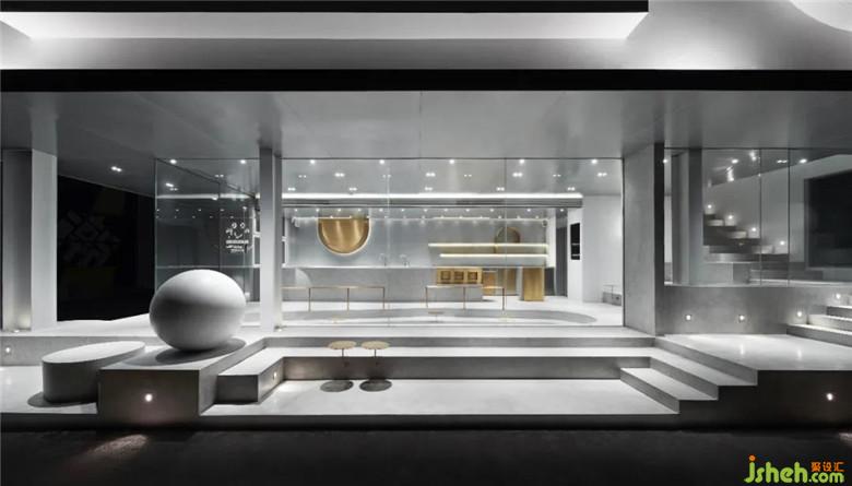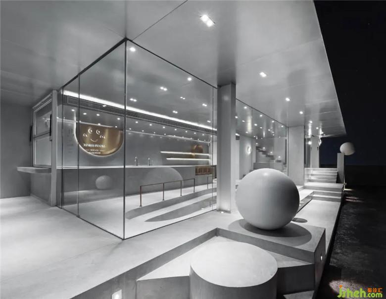 夜晚从外部观察,整个一层成为一个透明的发光体,装修公司使建筑呈现悬浮的状态,营造出具有强烈记忆点的视觉效果。