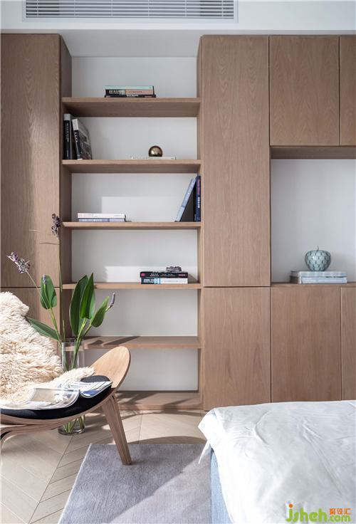 "The age of books is readable", the bookshelf in the master bedroom is rich in functions, and at the same time it once again extends the reading culture of this family.