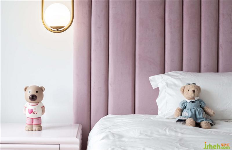 The design of the daughter’s room highlights the childlike innocence and romance. The lavender bedside background is gentle and dreamy. In addition, there are no more exaggerated decorations. The pure white walls and cabinets inject a calm color into the space and leave children’s growth. More imaginative spaces are left to remind people of Shuntaro Tanigawa’s three-line poem——