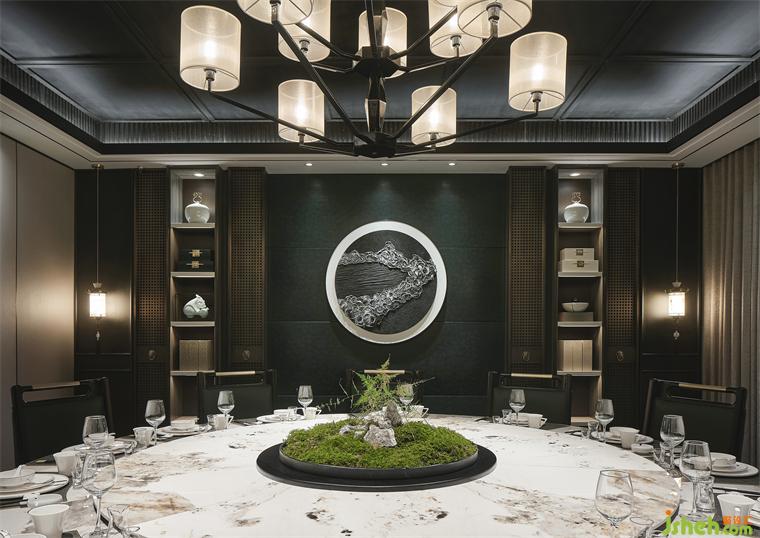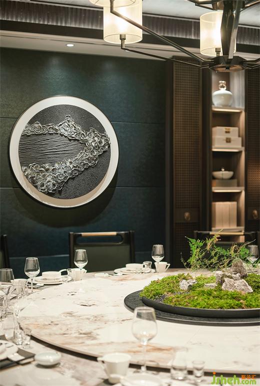 包间的整体色调在绿与黑白灰之间搭配,散发着清新,给人闲适安静的印象。