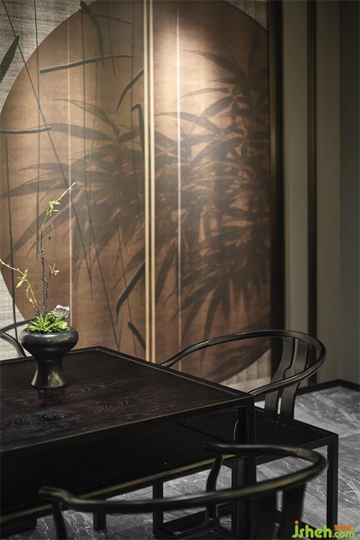 竹元素独特的艺术气息和茶空间相融共通,徐州酒店设计营造茶室空间一隅,场域的打造即是氛围的酿造。