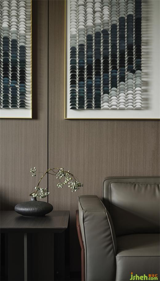 半绣皮雕软包背景墙不规则的造形排列像流动的山脉,如同企业海纳百川的格局。只要志同道合、敢为人先,拥有正直、正念、正能量,未来,一定充满希望,朝气蓬勃。