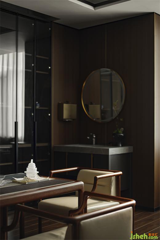 餐厅空间整体设计均显露着典雅的氛围,时尚现代的家具与中式金属屏风相融合,商务办公楼设计营造沉稳高雅的就餐氛围。