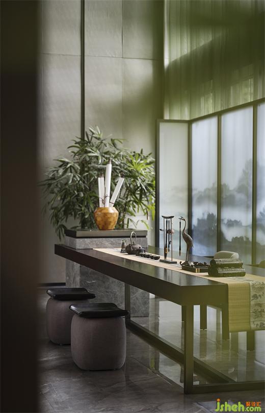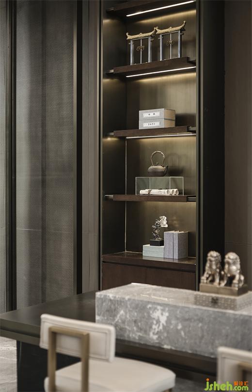 文房四宝亦是空间亮点,将东方的意境最大限度的用现代设计语言重述整合展现,正是营销中心设计师在本案想要表达的,艺术赋予生活以灵魂,二者的融合迁徊着无尽的美学意蕴。