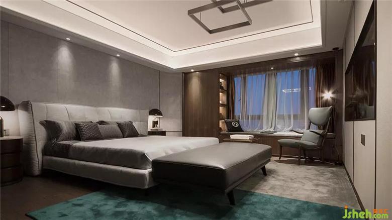 浅色系综合的长辈房平和静谧,背景立面上金色的叶子挂饰完成轻松平静的情绪表达,金色、灰色、褐色、银色,在设计师的巧思布置下多而不杂,和谐互融。