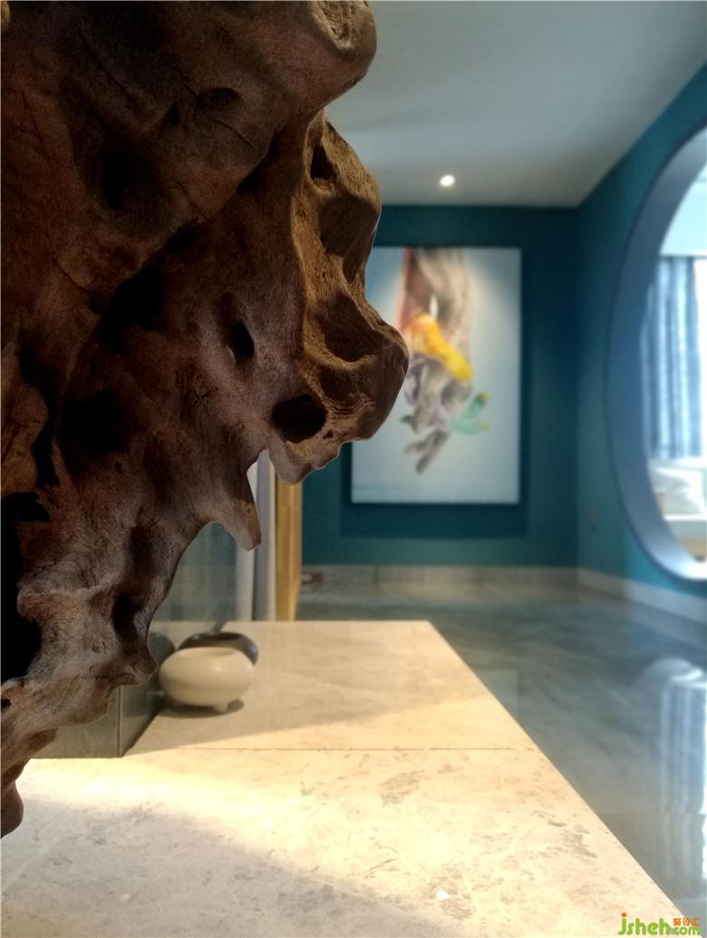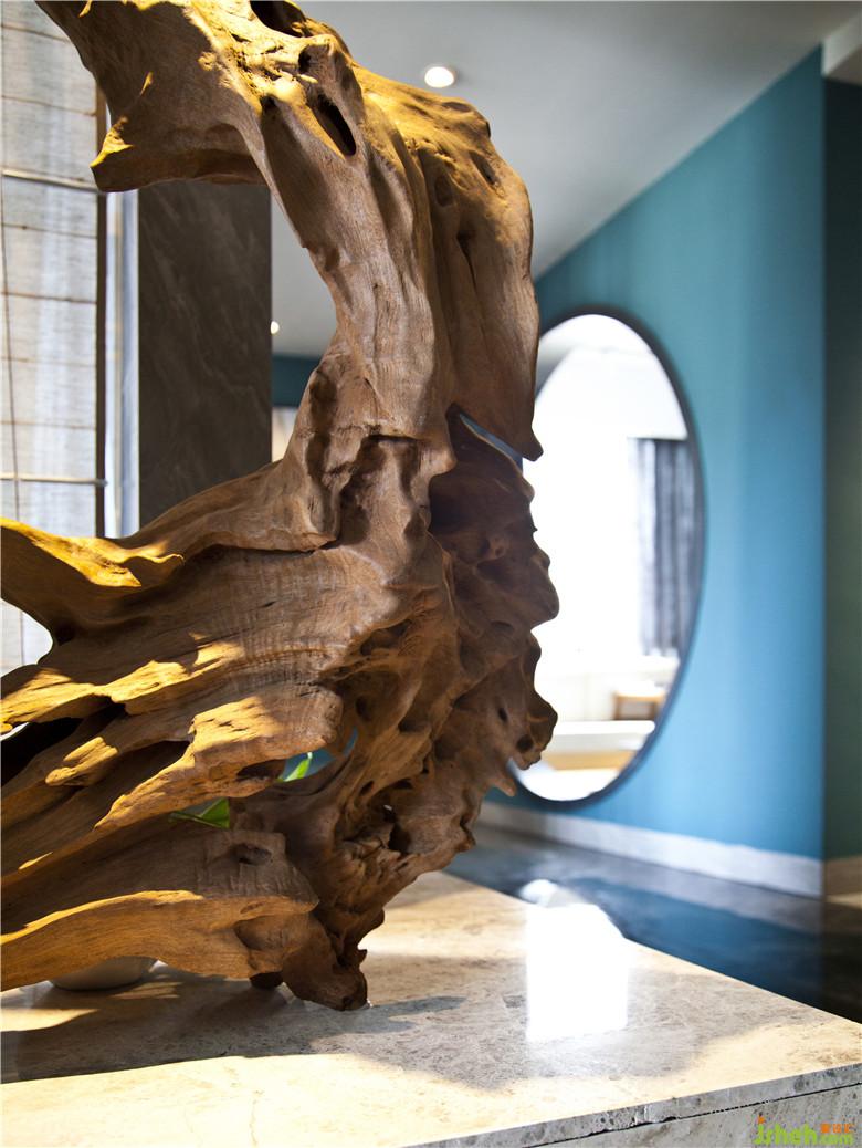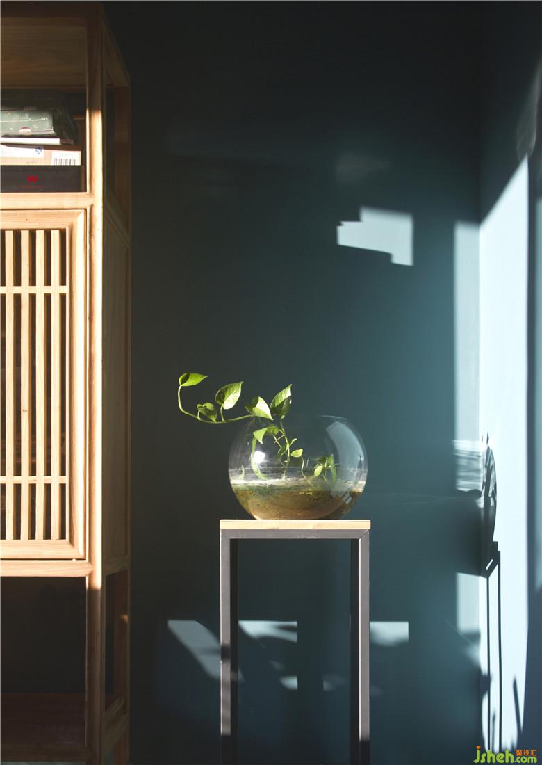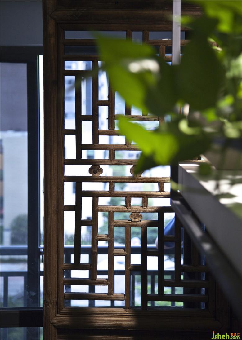 因为对老物件的情有独钟,几扇老门窗通过现代设计手法赋予其新的使命,斑驳带有岁月痕迹的老水缸、残缺的小石磨、质朴的朽木根、生机盎然的小绿植......古今碰撞,禅意渐浓。