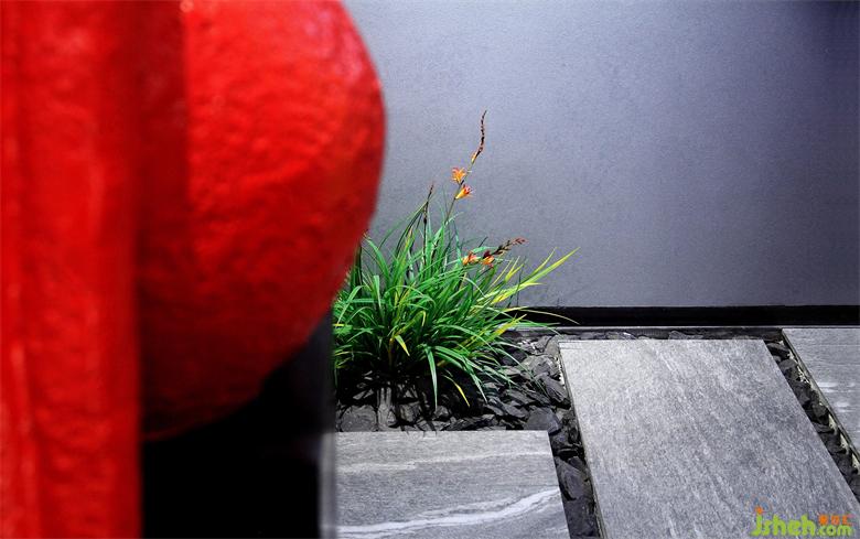在这个小尺度的空间中,透过半遮半掩的产品墙,涂料店设计不经意间即可欣赏禅意小“庭园”。
