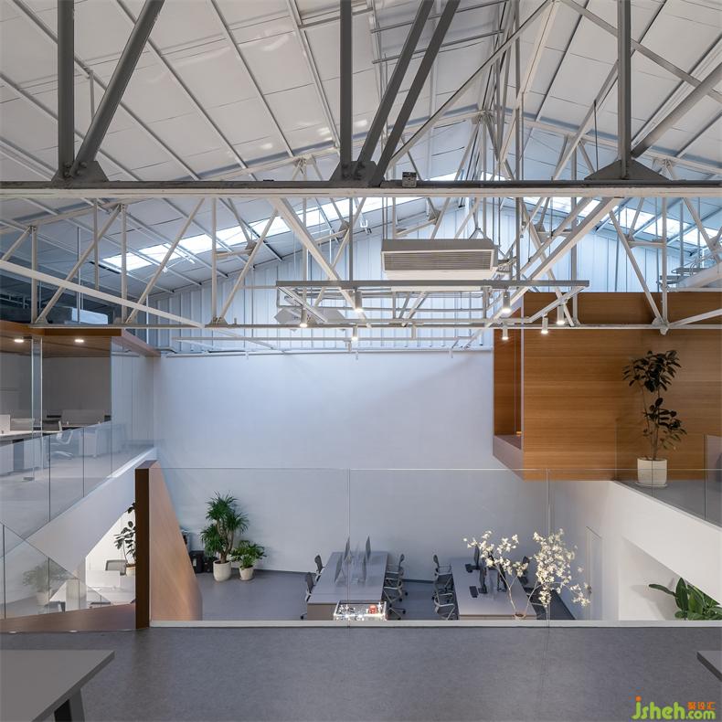 空间之美在于精神。普悦设计擅以建筑手法构建空间形体。在本案的设计中,最大化剥离老厂房的陈旧面层,让建筑回归本原,呈现纯粹的空间和结构美感。并以装置的方式,嵌入几组必要的功能体,让自由与对话的场所精神自然形成。