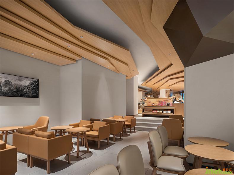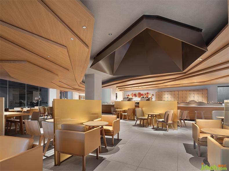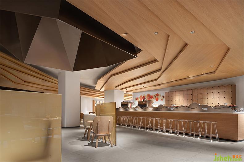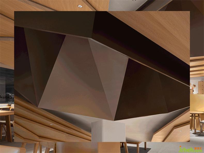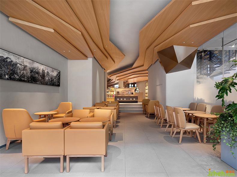 我们取法自然,汲取武夷山峡湾风貌精神,餐厅设计用山脉等高线为设计元素运用于天花设计,将自然的气息和生命力引入空间。