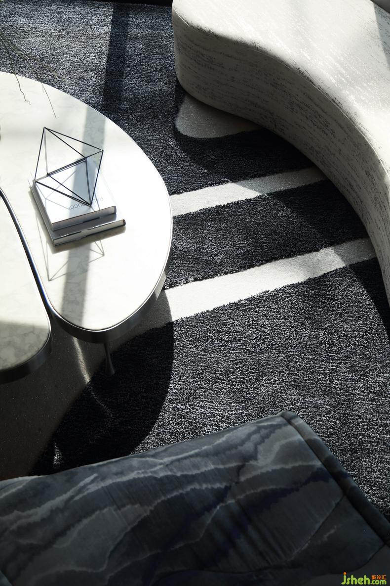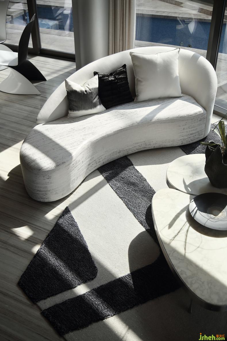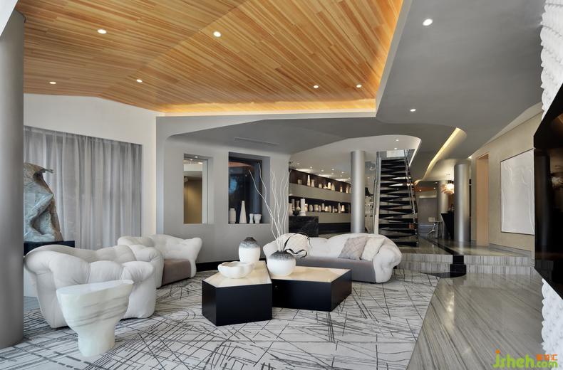 The warm wooden ceiling, the mottled light and shadow of the white geometric wall, the soft and lazy sofa, and the collision of wood color and black and white ensure the overall openness and artistic tension, and create an emotional and contemporary space.