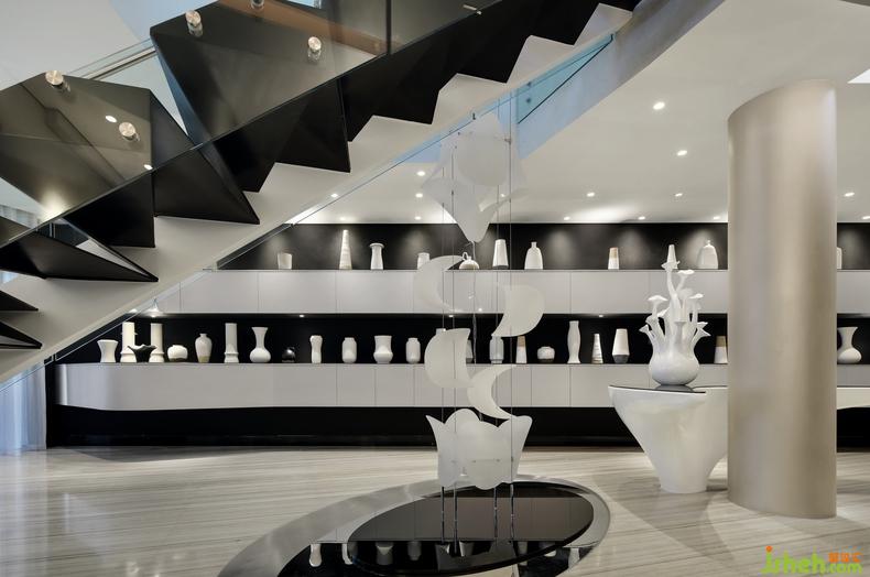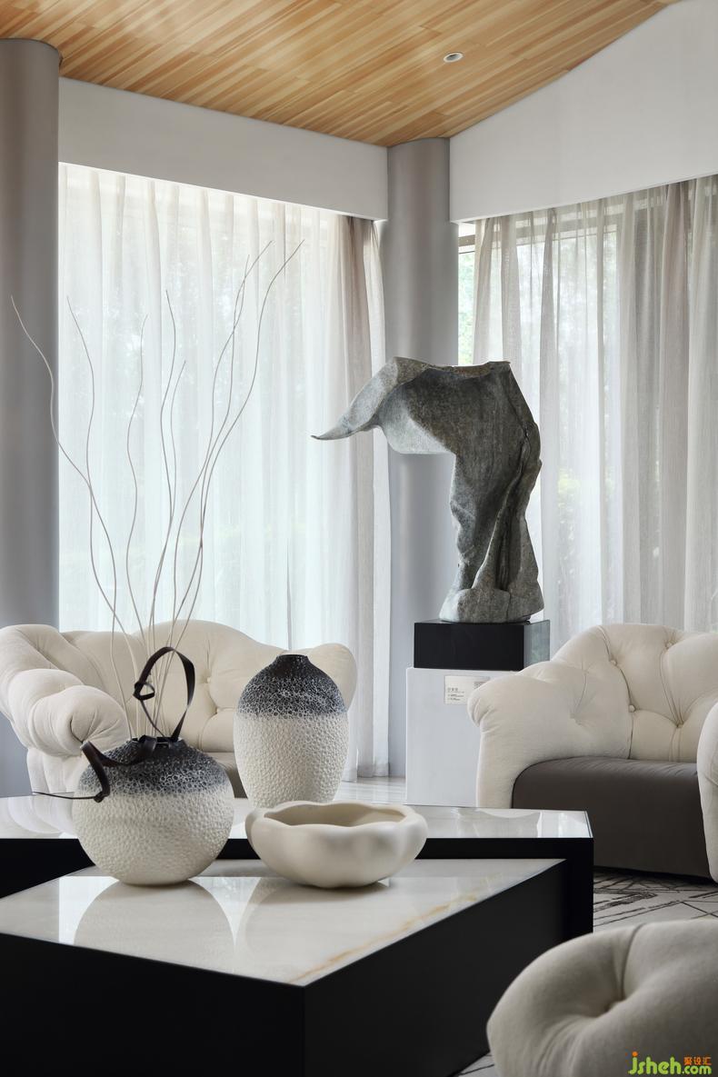 冷冽克制的黑白灰下,强烈的几何构成,形成极具现代感的空间基调,来自台湾著名艺术家许东荣先生的雕塑作品,为冷静的空间,注入了一丝不羁的灵魂。