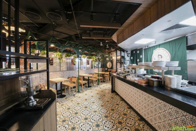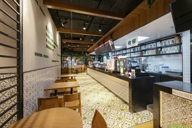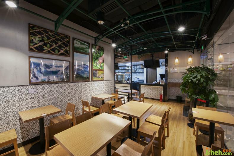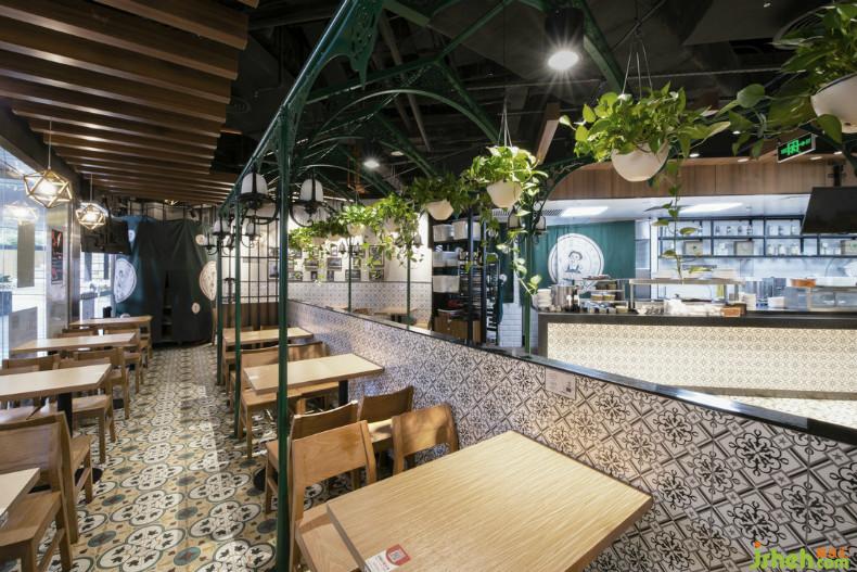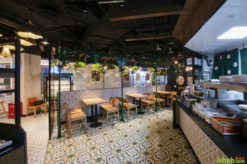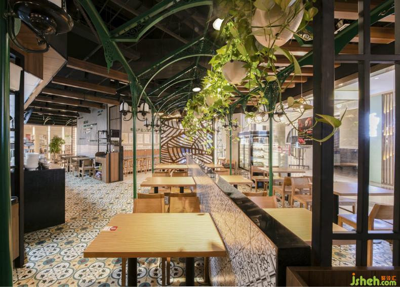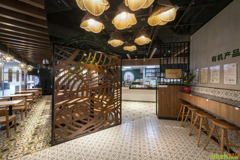 这是个卖新加坡肉骨茶的餐厅。餐厅设计在入口灯具选择中,用东南亚的蒲扇作为灯具的元素,展示当地印象。色温为2790K,形成温暖感觉,也有怀旧的印象。设计中,克制性的运用灯光,形成朴实的用光环境。
