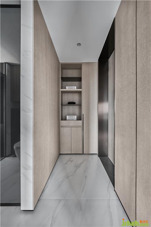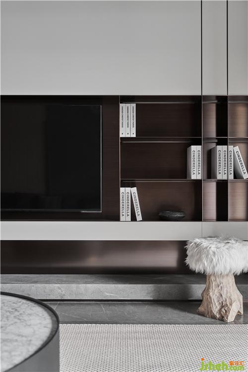浅咖色的真皮饰面的沙发、原木边几、天然大理石台面、琥珀色的玻璃灯饰与及随处可见金属收边处理,无一不彰显着居者的清泊淡雅的生活品味。室内设计师