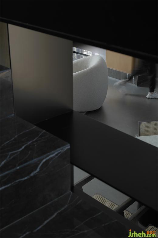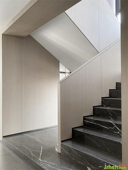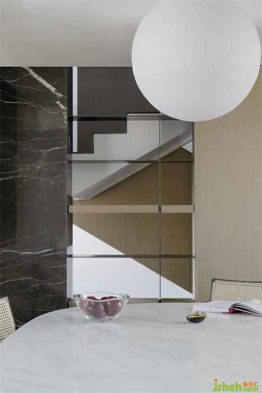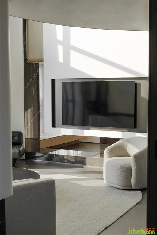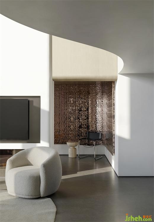 东莞住宅设计流畅的线条与静止的水波装置,一静一动之间巧妙地展开空间的前行动线,指引着居住者抵达下一处目的地。