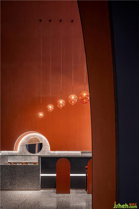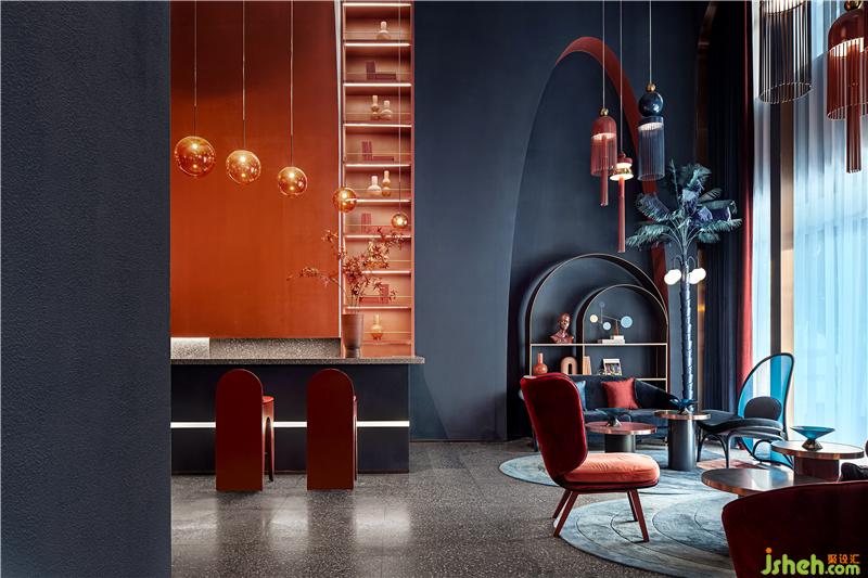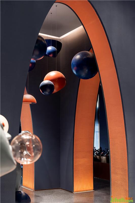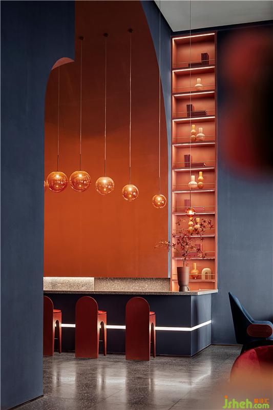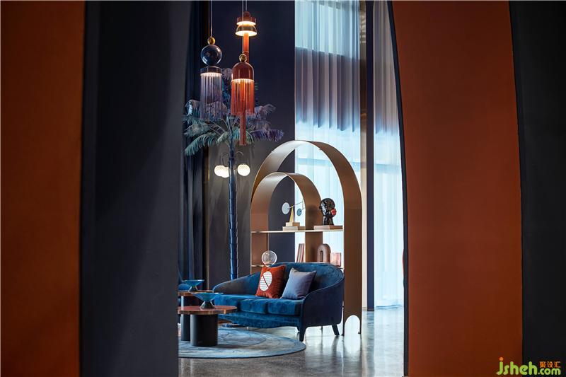 通过艺术化的营造,墙体弧形曲线、光线、家具、灯具设置饰品等都成了艺术化的一部分,每个物件紧密结合,相互呼应。冷与暖、跃动与静谧、色彩的感性与线条的理性,看似反差的元素碰撞出强烈的个性,看似高冷的艺术与有温度的生活融为一体。