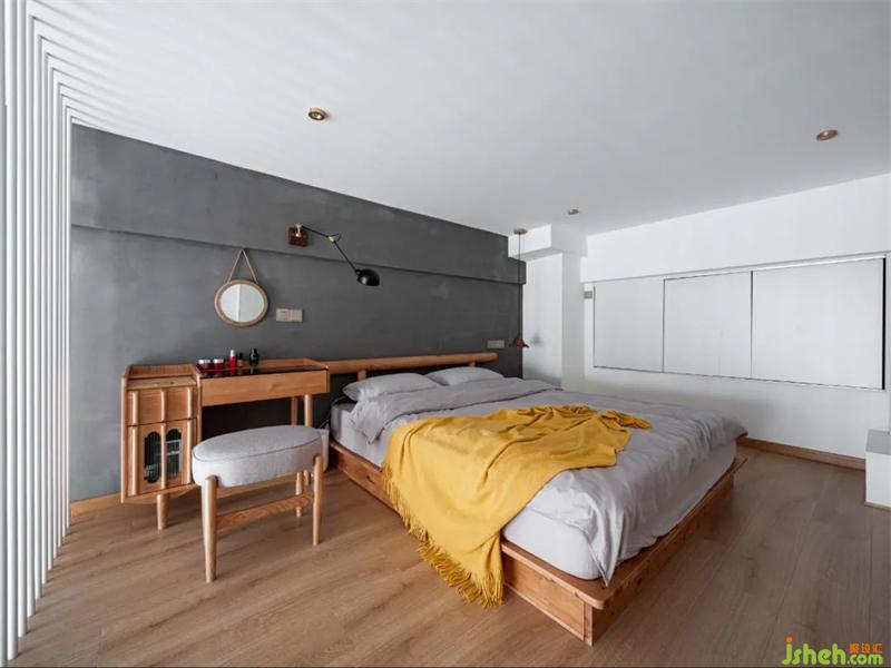 我希望空间是干净整洁的,做了150的悬空假墙出来内嵌电视机因为我不希望看到它的侧面。 同时墙体外侧内嵌灯带补充空间灯光氛围。