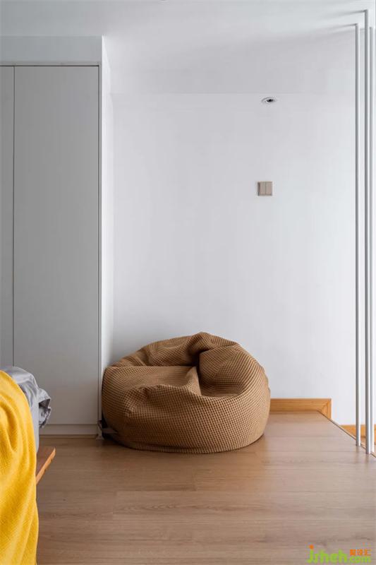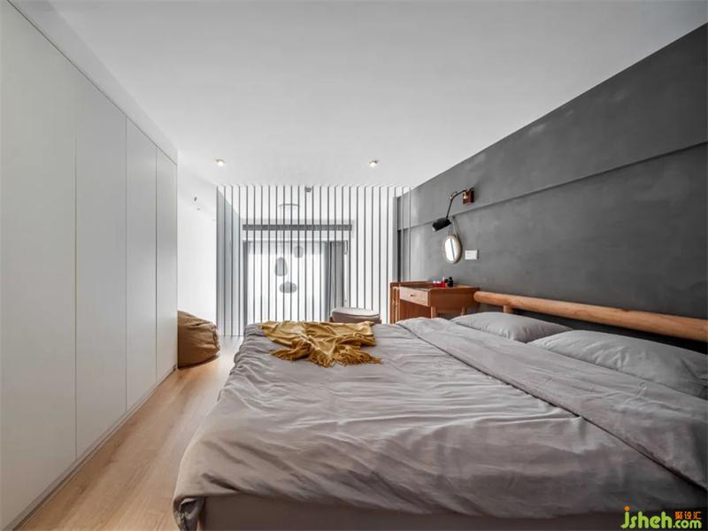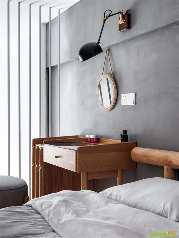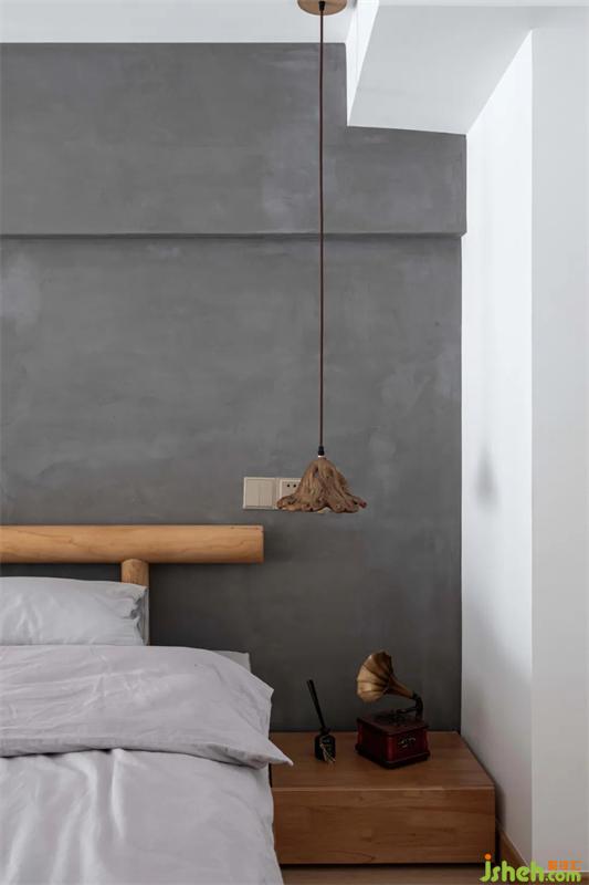 关于卧室家具,业主特别有自己的想法,Loft装修设计选了一款颇具艺术感的原木床。