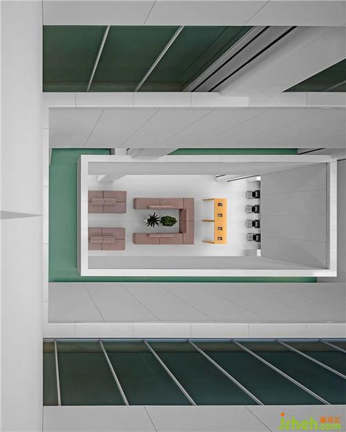 光的对面是彩虹。将自然光引入室内空间,同时彩虹渐变作为基础配色元素植入室内空间中。