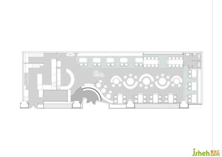 弧形卡座区弧形卡座与顶面吊灯的结合,划分出卡座区和通道的空间同时增加氛围感