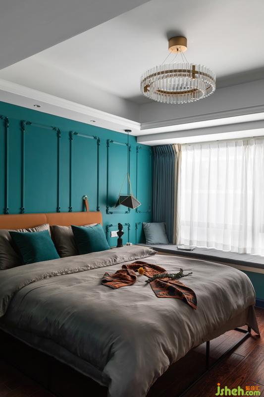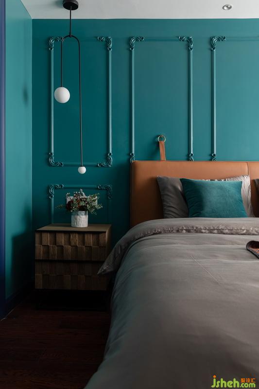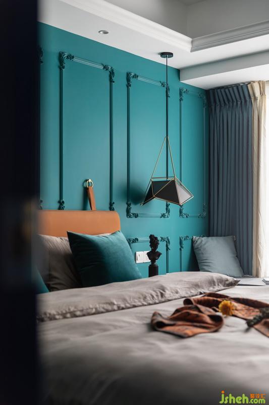 室内设计师和业主双方在前期沟通中,业主很明确想要将卧室装扮的个性不失温暖,背景墙增加了石膏线条,主色调延续了蓝色为主题,让人留恋不已。
