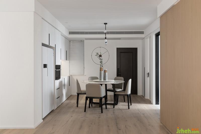 简单却要有品味,体现在设计细节上的把握,在施工上更要求精工细作,每一个细小的局部和装饰都要深思熟虑,餐厅并没有做复杂繁琐的造型,墙体向主卫不规则移动60-70公分,合理增加西厨和冰箱。