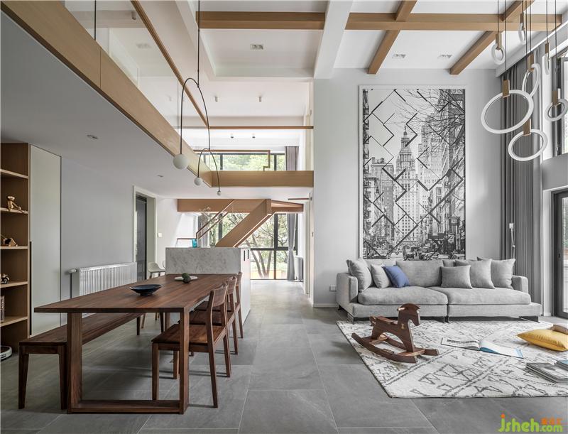 在开放与独立之间,室内设计师把握好了最适中的尺度,各个功能区相互连接,又不打扰。屋主将客餐厅定义为家的生活中心,宽敞的面积,多处的开窗设计保证了室内充足的采光视野,打破传统观念,客厅没有茶几,让设计回归生活!