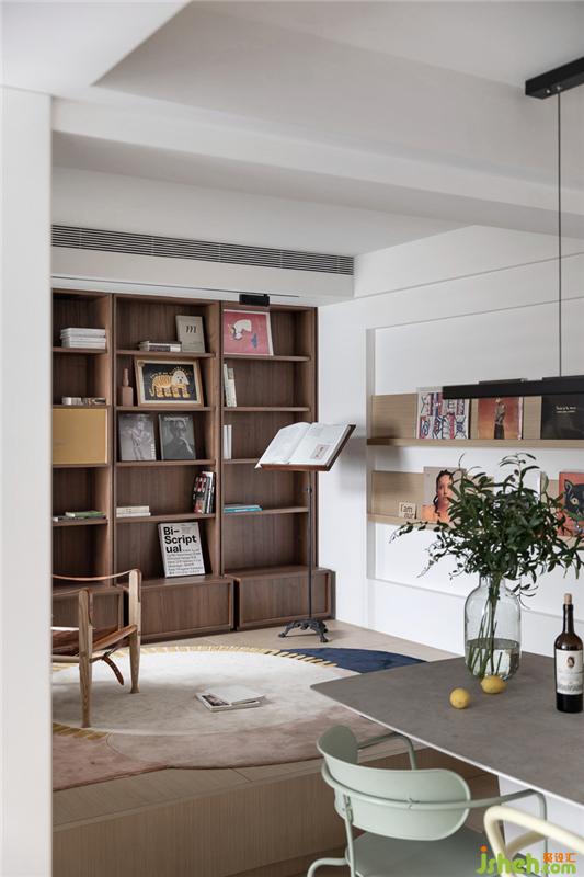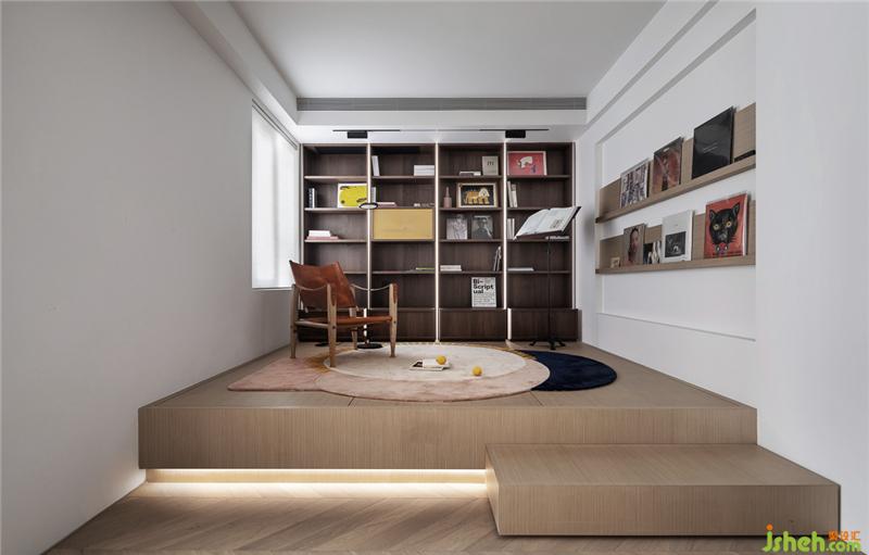 拾级而上,装修设计是由餐厅至阅读区域的转换方式。进户视线所及处的开放式书房让家更有书卷气息,阅读本身就是一件能够让人沉醉愉悦的事。